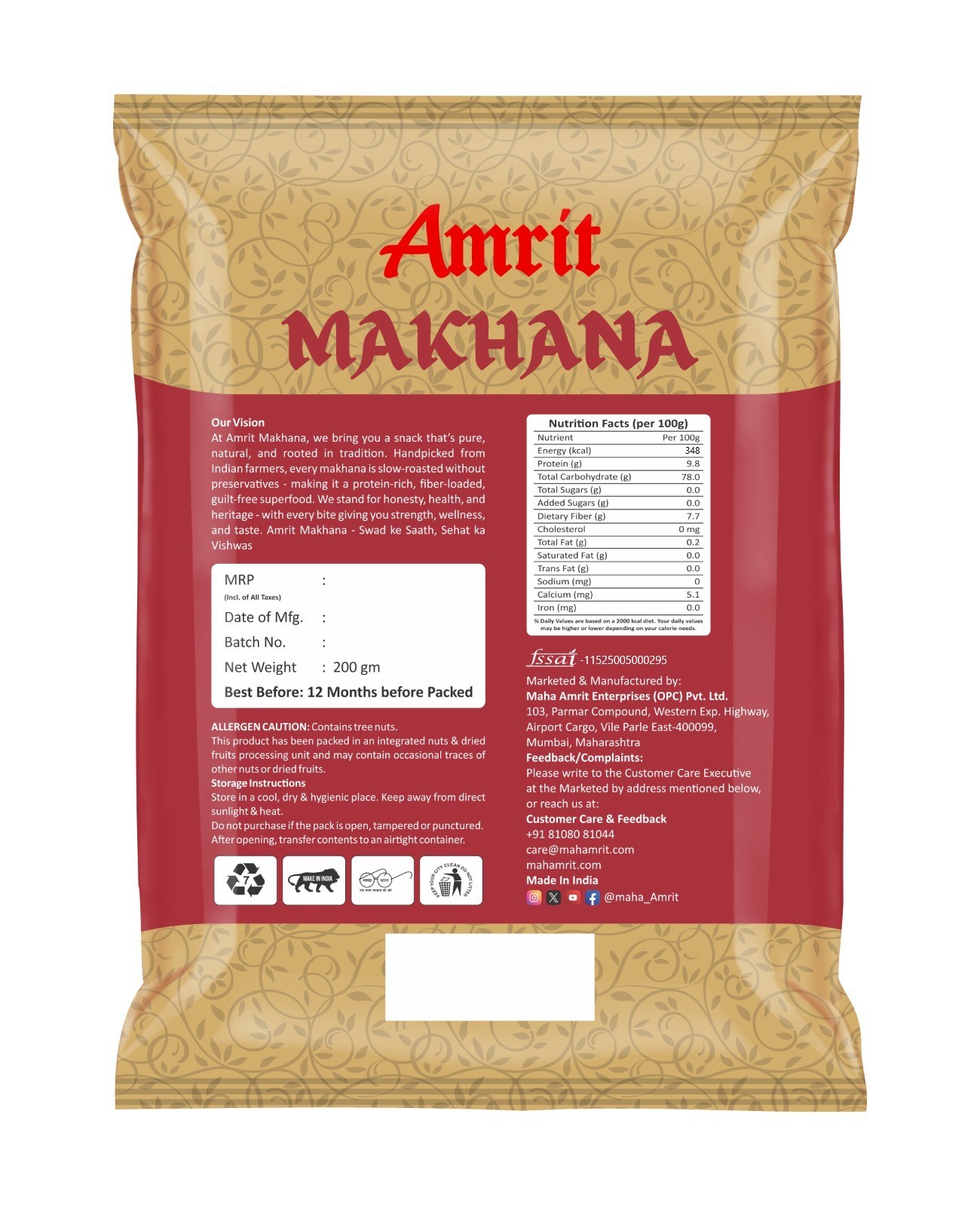 Amrit High Protein Phool Makhana (Lotus Seed Pops) Healthy Dry Fruit Snack Fox Nut (1 x 200 g)